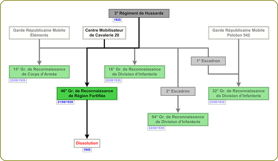 46° Groupe de Reconnaissance de Région Fortifiée Filiation. Décorations et Citations. Aucune Fourragère. Aucune Campagnes et Opérations. Seconde Guerre Mondiale 1939-1945. 1940 Théatre Européen Bataille de France (Epinal - Portieux) Insignes. Insigne 1940 Description Héraldique