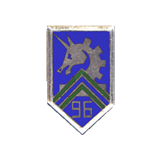 96° Groupe de Reconnaissance de Division d'Infanterie Filiation. Décorations et Citations. Aucune Fourragère. Aucune Campagnes et Opérations. Seconde Guerre Mondiale 1939-1945. 1940 Théatre Européen Bataille de France (Bois de Stenay - Louppy - Jametz - Lacroix - Bannoncourt - Saint-Michel - Commercy - Uruffe - Vannes-le-Château) Insignes. Projet d'Insigne 1940 Dessin tiré de l'Encyclopédie des Insignes de l'Arme Blindée Cavalerie Tome 6 Description Héraldique Insigne 1972 Description Héraldique