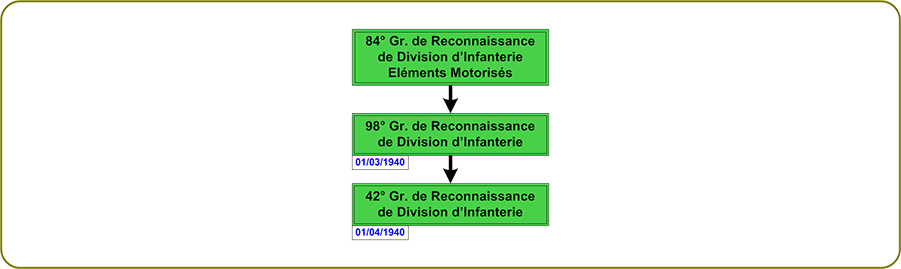 98° Groupe de Reconnaissance de Division d'Infanterie Filiation. Décorations et Citations. Aucune Fourragère. Aucune Campagnes et Opérations. Aucune Insignes. Pas d'insigne connu.