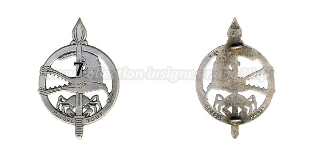 1° Régiment Étranger de Cavalerie 7° Groupe d'Escadrons Amphibie. 1° Régiment Étranger de Cavalerie, 7° Groupe d'Escadrons Amphibie (Cliquez pour agrandir) Fabricant: DRAGO PARIS Retirage: R 76 Retirage de 1976 de l'insigne réalisé en 1953.