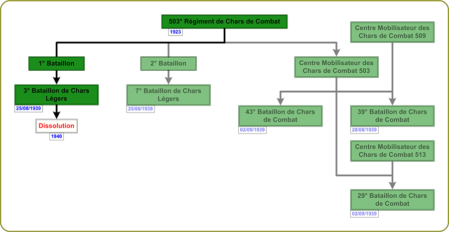 3° Bataillon de Chars Légers Filiation. Décorations et Citations. Aucune. Fourragère. Aucune Campagnes et Opérations. Seconde Guerre Mondiale 1939-1945. 1940 Théatre Européens Bataille de France Insignes. Insigne 1941 Description Héraldique