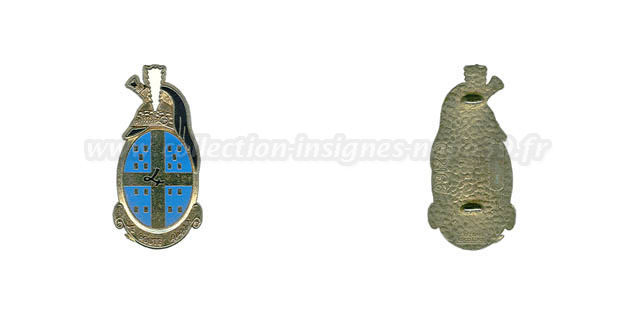 Modèle en émail. Tirage réalisé avec l'inscription dans l'écu de couleur bronze et non argenté.
