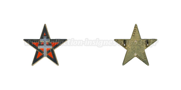 Hauteur: 37mm. Numéro d'homologation G 1827 au lieu de G 1627. Tirage réalisé avec le pentalpha en métal doré et avec une fixation par épingle horizontale.